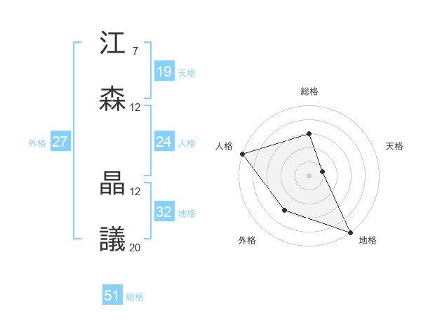 江森 晶議さんの総格は51画の3点!