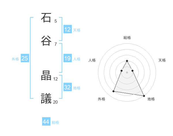 石谷 晶議さんを姓名の画数から五運を鑑定