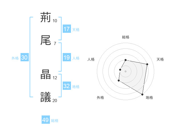 荊尾 晶議さんの総格は49画の2点!