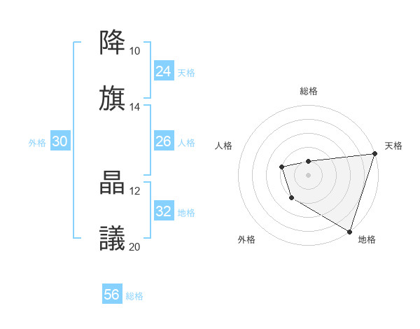 降旗 晶議さんの総格は56画の1点!