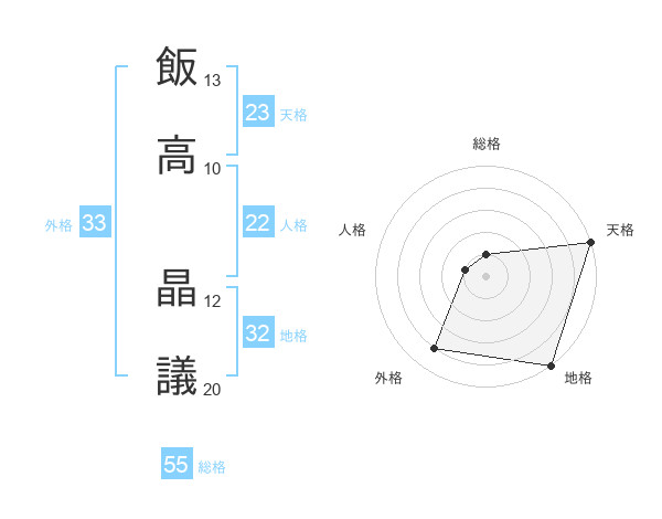 飯高 晶議さんの総格は55画の1点!