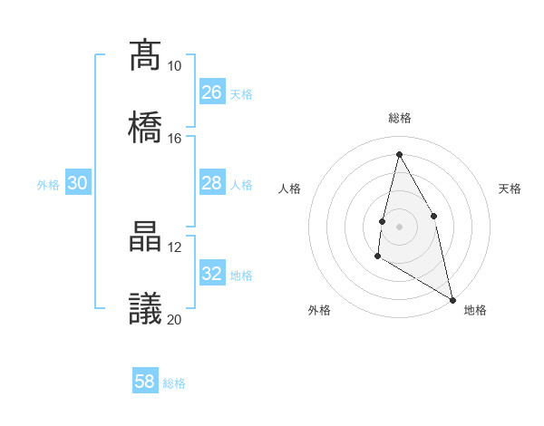 髙橋 晶議さんの総格は58画の4点!