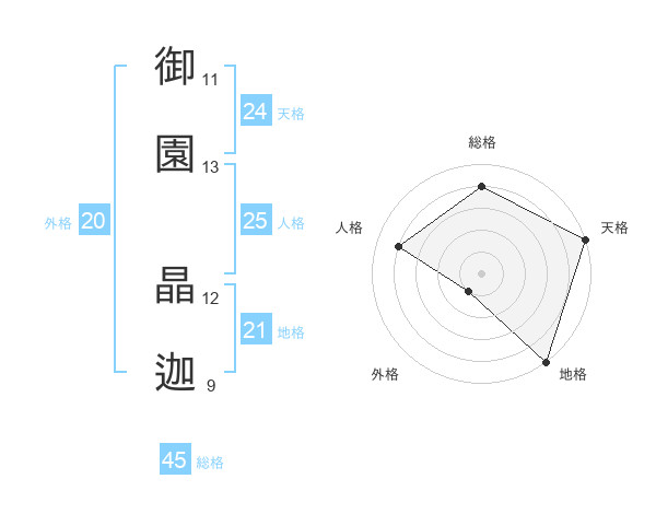 御園 晶迦さんの総格は45画の4点!