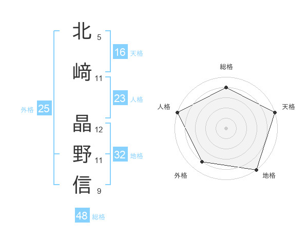 北﨑 晶野信さんの天格は16画の5点!