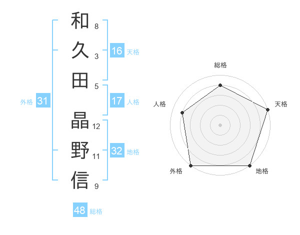 和久田 晶野信さんを姓名の画数から五運を鑑定