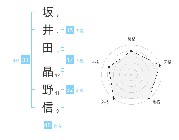 坂井田 晶野信さんの人格は17画の4点!
