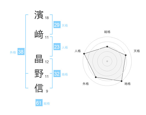 濱﨑 晶野信さんの人格は23画の5点!