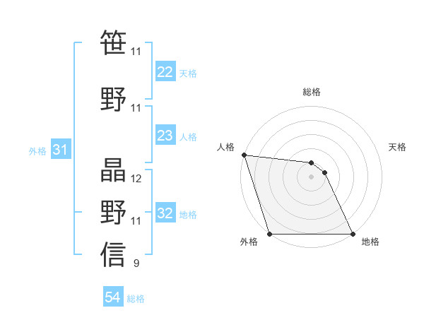 笹野 晶野信さんを姓名の画数から五運を鑑定
