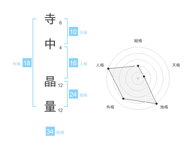 寺中 晶量さんの総格は34画の2点!