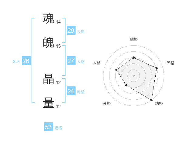魂魄 晶量さんの総格は53画の3点!