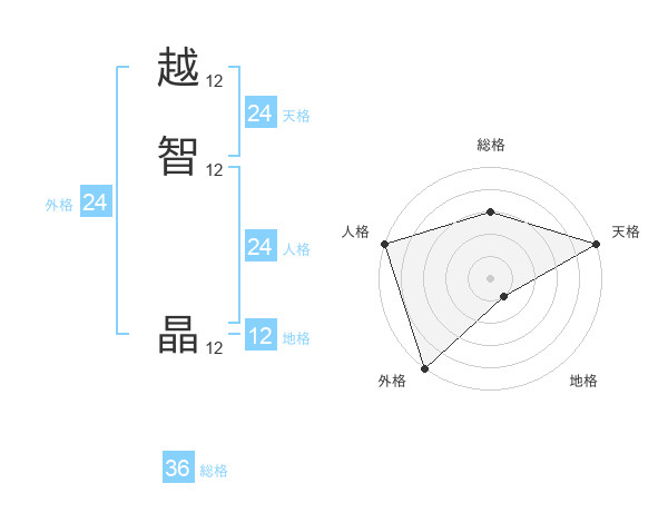 越智 晶さんの地格は12画の1点!