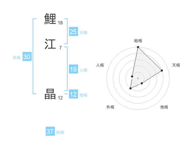 鯉江 晶さんの総格は37画の5点!