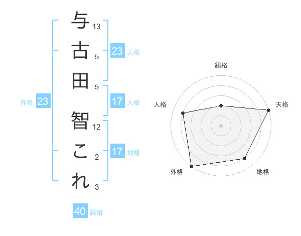 与古田 智これさんの天格は23画の5点!
