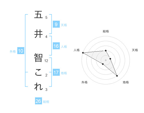 五井 智これさんの総格は26画の2点!