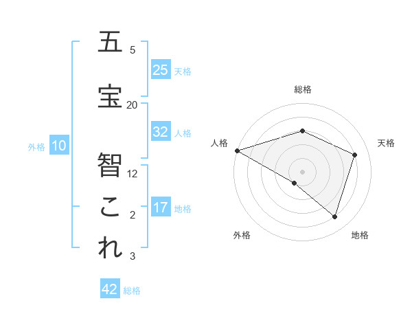 五宝 智これさんを姓名の画数から五運を鑑定
