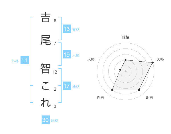 吉尾 智これさんを姓名の画数から五運を鑑定