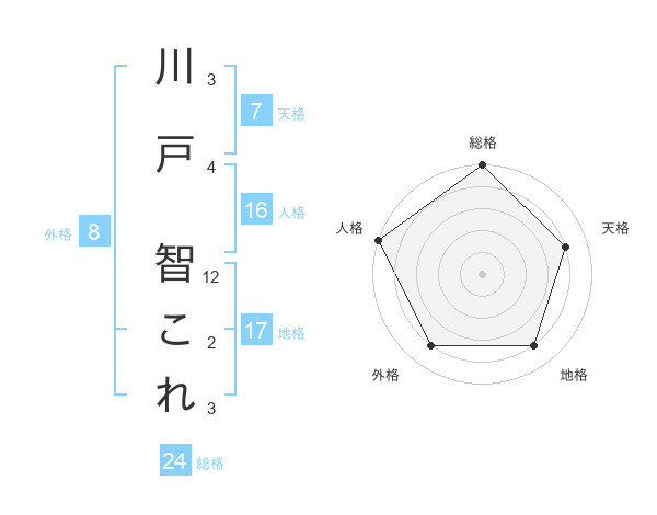 川戸 智これさんの総格は24画の5点!