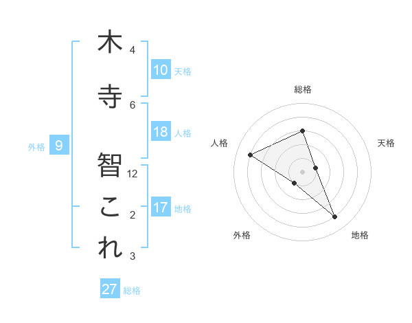 木寺 智これさんの総格は27画の3点!