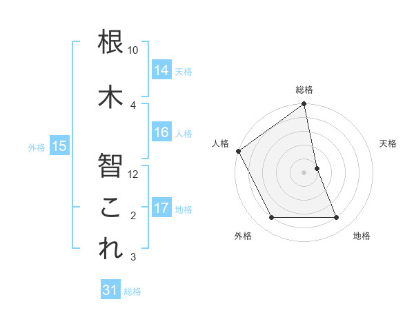 根木 智これさんの天格は14画の1点!