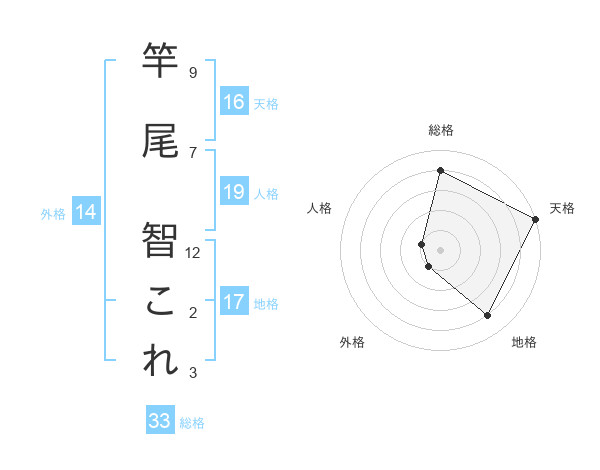 竿尾 智これさんを姓名の画数から五運を鑑定