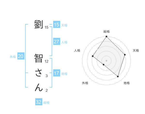劉 智さんさんの総格は32画の5点!