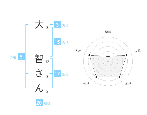 大 智さんさんの総格は20画の1点!