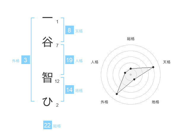 一谷 智ひさんの天格は8画の4点!