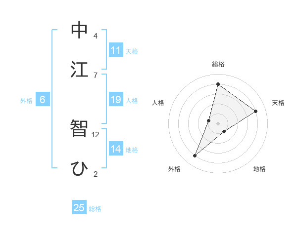 中江 智ひさんの総格は25画の4点!