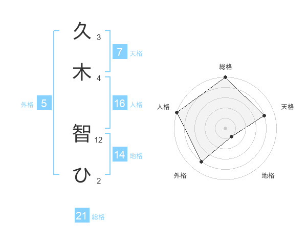 久木 智ひさんの総格は21画の5点!