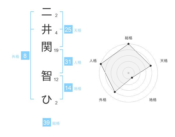 二井関 智ひさんの総格は39画の5点!
