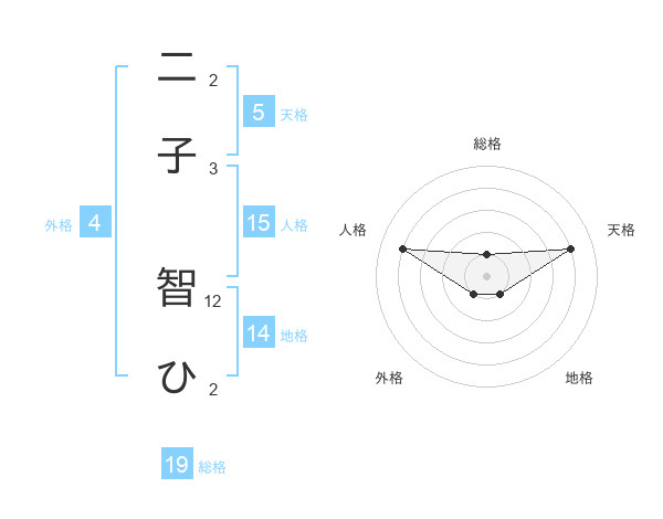 二子 智ひさんの天格は5画の4点!