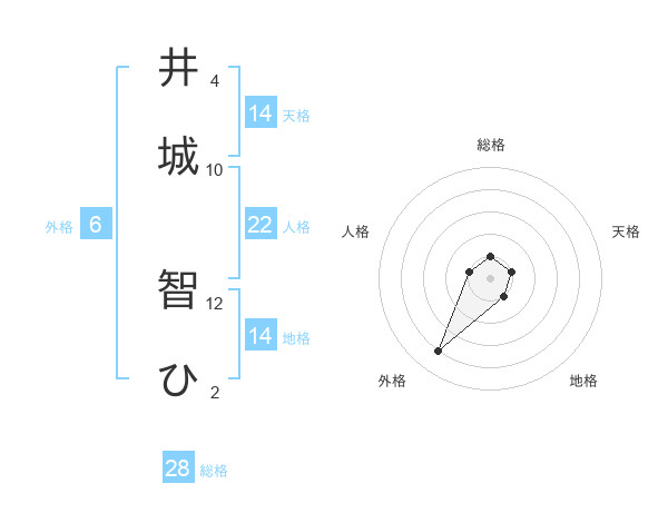 井城 智ひさんの天格は14画の1点!