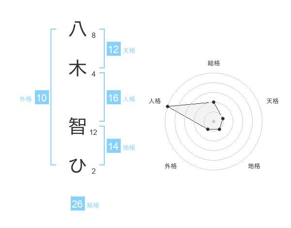 八木 智ひさんの総格は26画の2点