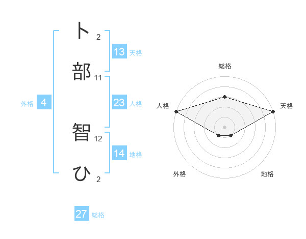 卜部 智ひさんを姓名の画数から五運を鑑定
