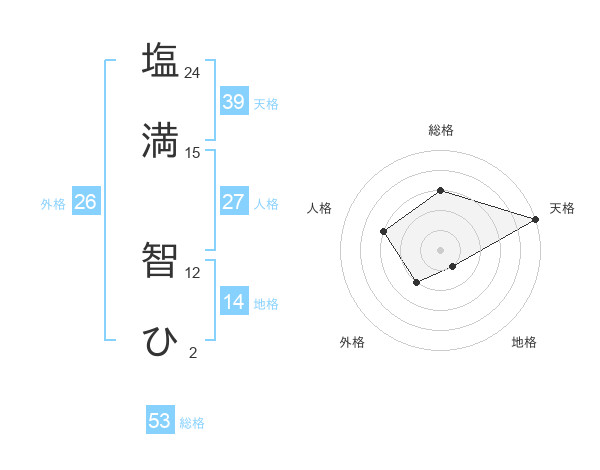 塩満 智ひさんを姓名の画数から五運を鑑定