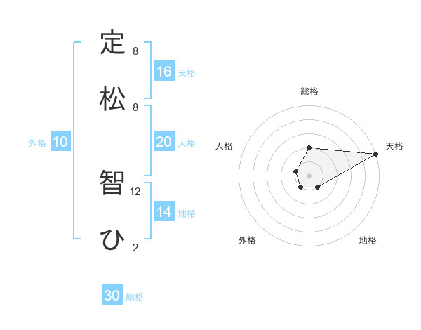 定松 智ひさんの天格は16画の5点!