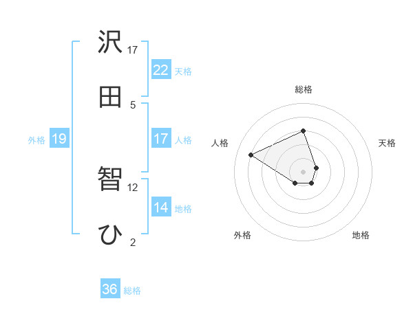 沢田 智ひさんの外格は19画の1点!