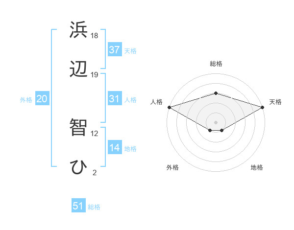 浜辺 智ひさんを姓名の画数から五運を鑑定