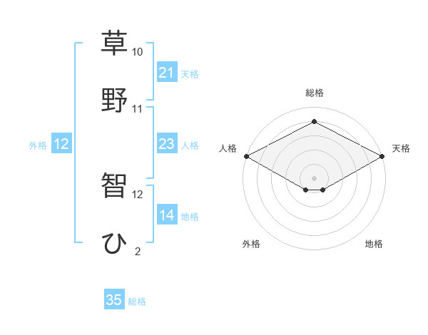 草野 智ひさんの天格は21画の5点!