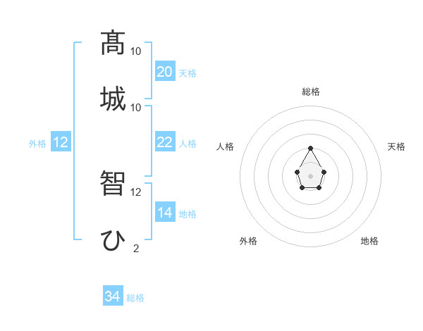 髙城 智ひさんの総格は34画の2点!