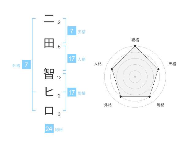 二田 智ヒロさんを姓名の画数から五運を鑑定