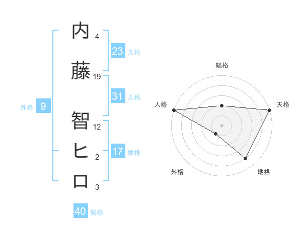 内藤 智ヒロさんの天格は23画の5点!