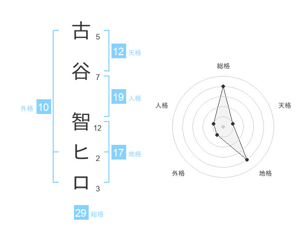 古谷 智ヒロさんの天格は12画の1点!