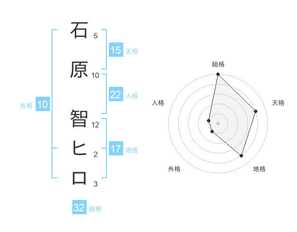 石原 智ヒロさんの総格は32画の5点!