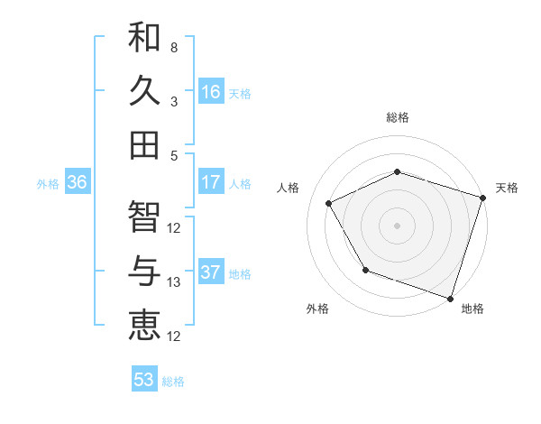 和久田 智与恵さんを姓名の画数から五運を鑑定