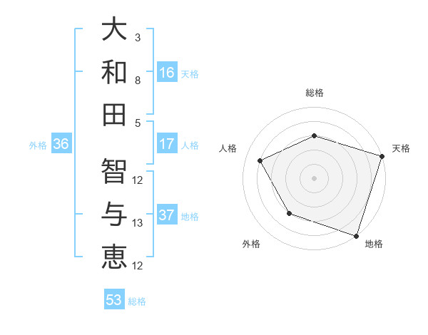 大和田 智与恵さんの総格は53画の3点!