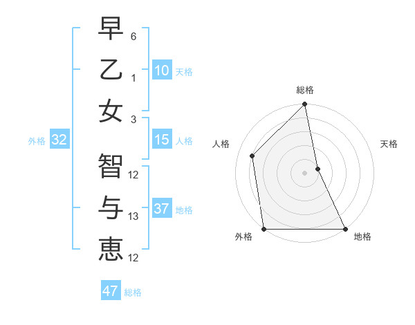 早乙女 智与恵さんの総格は47画の5点!