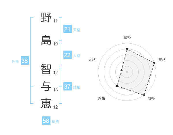 野島 智与恵さんを姓名の画数から五運を鑑定