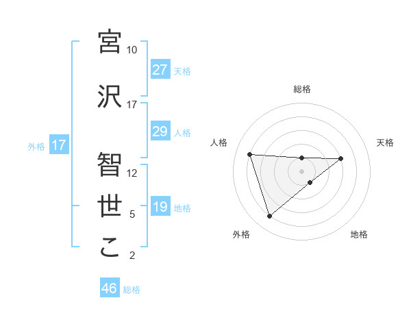 宮沢 智世こさんを姓名の画数から五運を鑑定