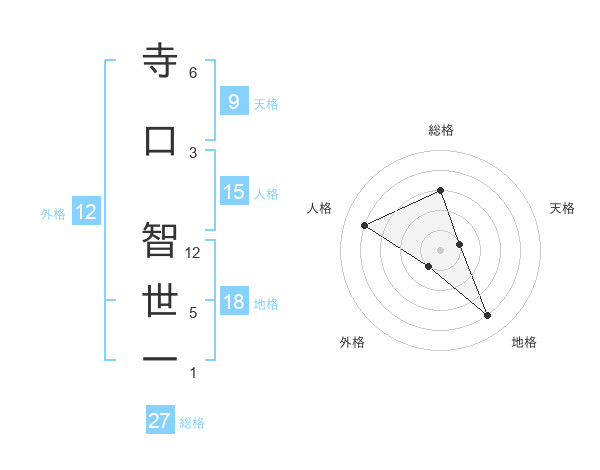 寺口 智世一さんを姓名の画数から五運を鑑定